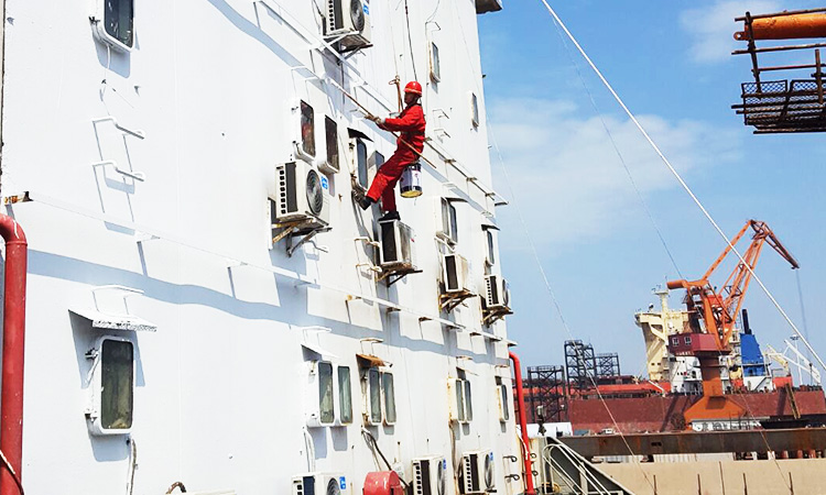 此次修理不但需要船舶上塢進行水下船體和設(shè)備檢修等,還有大量需自修的項目,其中除銹刷漆、救生艇檢修和甲板部位的各類設(shè)備、器材的維修等諸多項目都是室外作業(yè),天氣炎熱,對船舶修理難度較大;同時還需接受蘇州船檢局專業(yè)人員現(xiàn)場登船進行船舶檢驗。